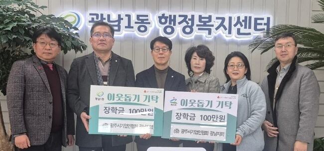 광주시 기업인협의회 광남지회 김영선 회장은 지난달 30일 광남1동 행정복지센터를 방문해 광남1·2동에 각각 100만 원씩 총 200만 원의 장학금을 기탁했다.