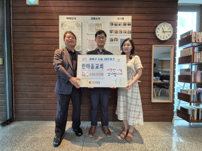 서울 성북구 돈암2동은 한마음교회와 주민자치회 행복나눔분과가 호우 피해 극복을 위한 특별모금에 성금을 기부했다고 밝혔다.