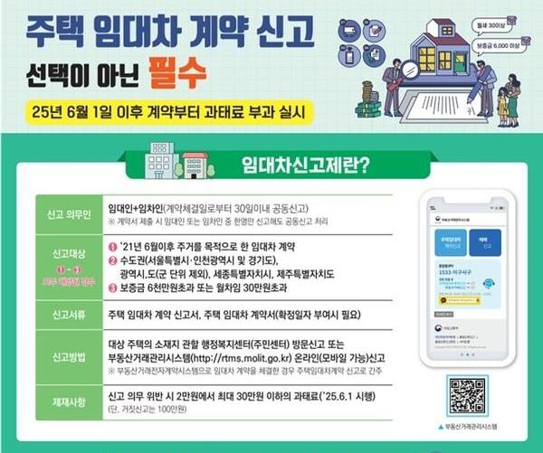 `주택 임대차 계약 신고제`는 임대차 계약 체결 후 30일 이내에 계약 내용을 신고하도록 의무화한 제도로, 임대차 시장의 투명성을 높이고 임차인의 권익 보호를 위해 2021년 6월부터 시행됐다.