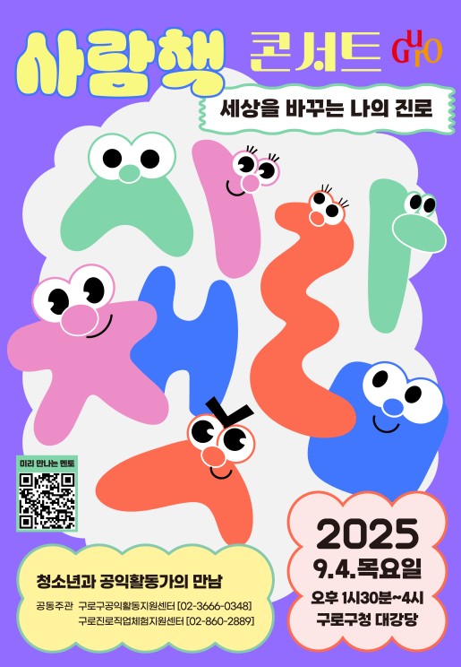 장인홍 구로구청장은 “이번 콘서트가 청소년들에게 단순한 직업 탐색이 아닌, 세상을 어떻게 살아갈지 고민하는 계기가 되길 바란다”며 “앞으로도 청소년 성장에 도움이 되는 다양한 진로 프로그램을 적극 추진하겠다”고 말했다.